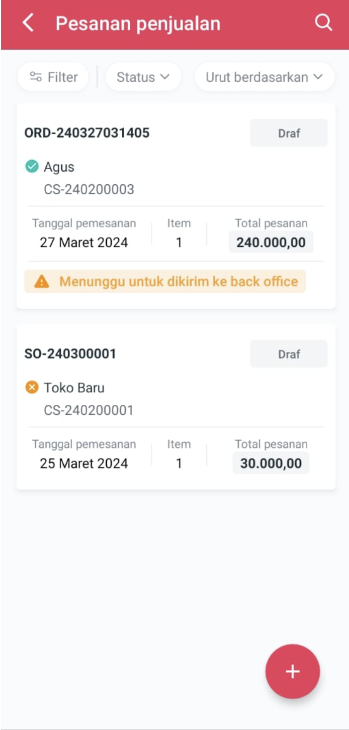 **Step 2.** Cari atau filter pesanan yang akan diubah dengan status **Draft**.