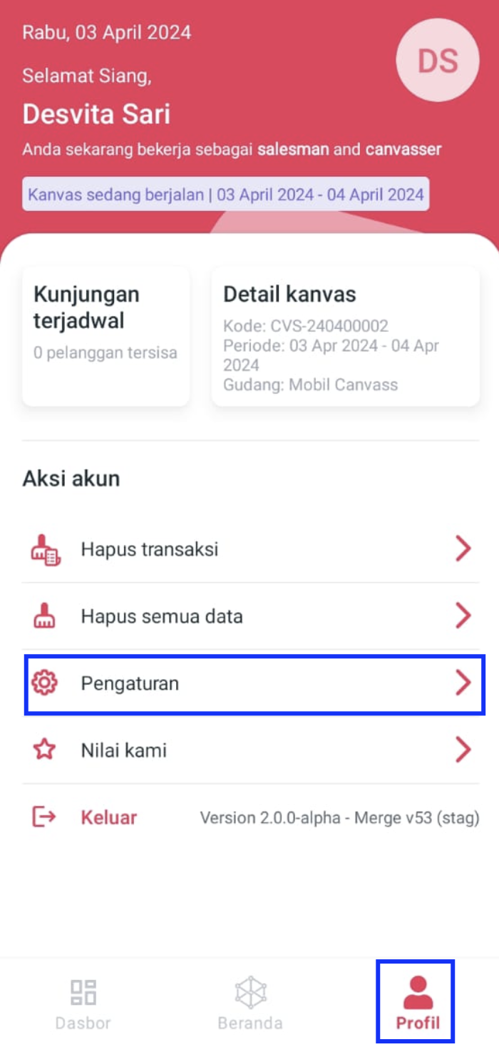 **Step 2.** Pilih menu **Profil**.&#x20;