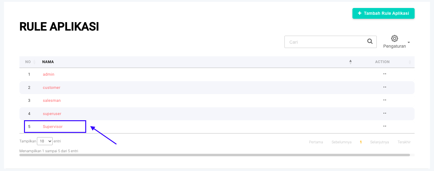 **Step 7:** Rule yang baru saja dibuat akan muncul pada halaman **Rule Aplikasi**.