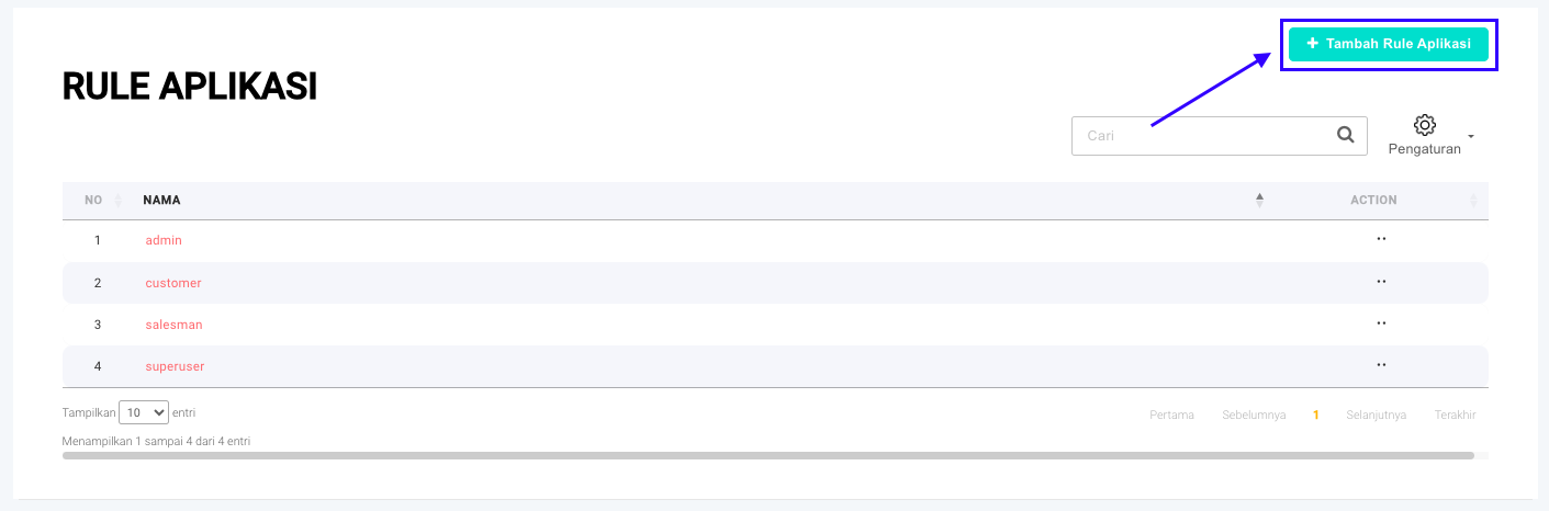 **Step 2:** Klik tombol **+ Tambah Rule Aplikasi**.