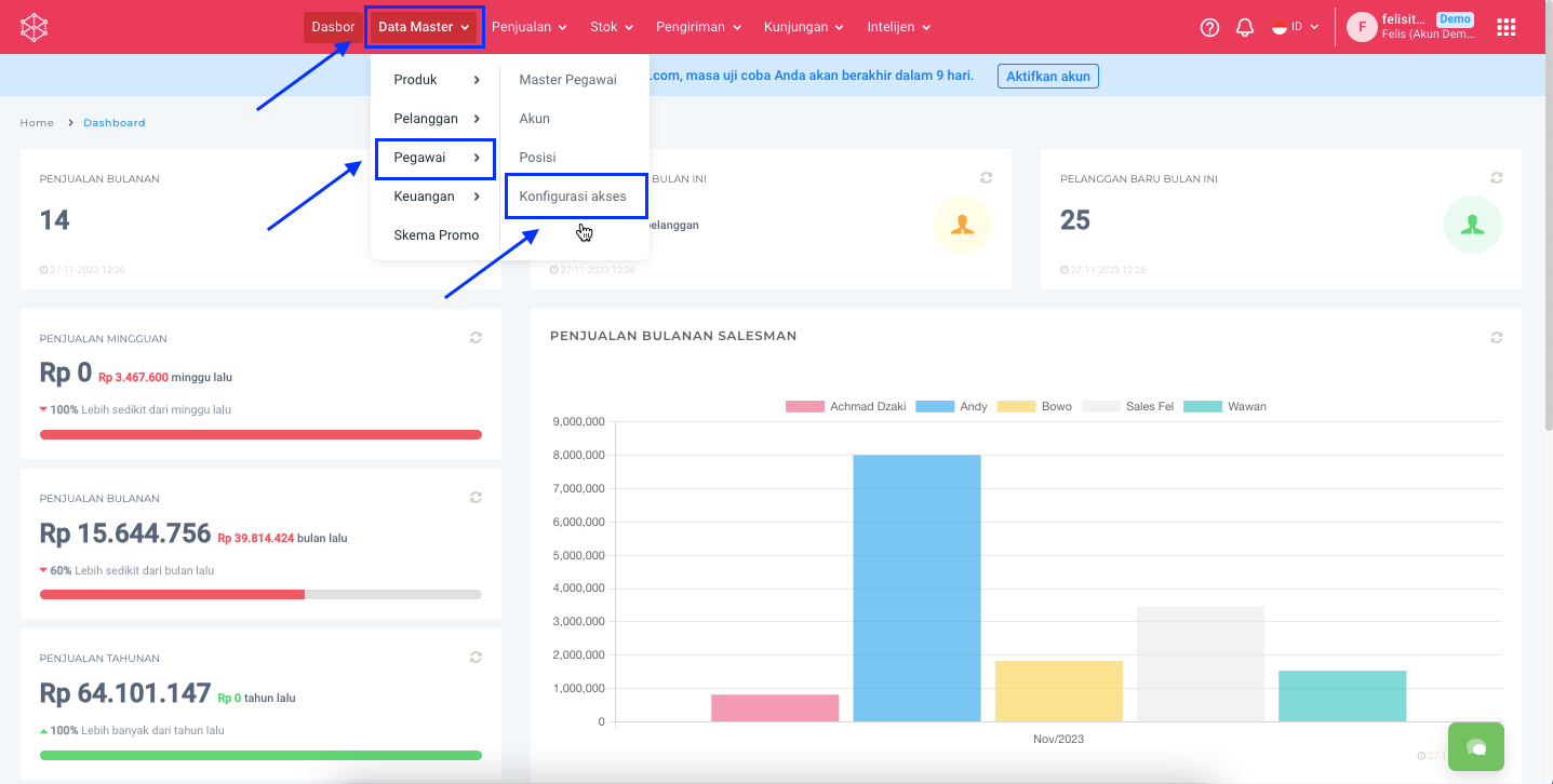 **Step 1:** Masuk ke menu **Data Master > Pegawai > Konfigurasi Akses.**