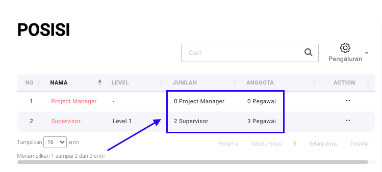 **Step 2:** Anda tidak dapat menghapus Posisi yang masih mempunyai **Pegawai** dan **Anggota**.
