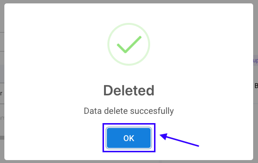 **Step 4:** Akan muncul pop up notifikasi **Data delete successfully** menandakan data berhasil dihapus, kemudian klik tombol **Hapus**.