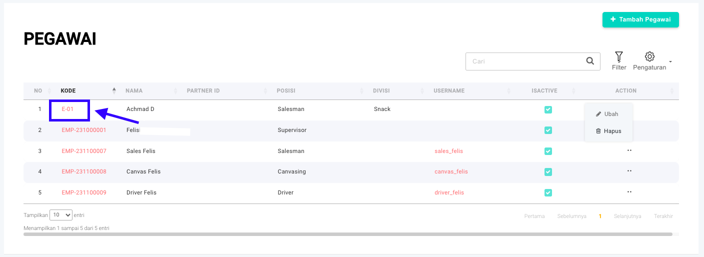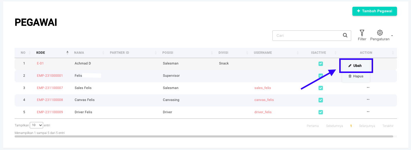 ## Cara Mengubah Data Pegawai