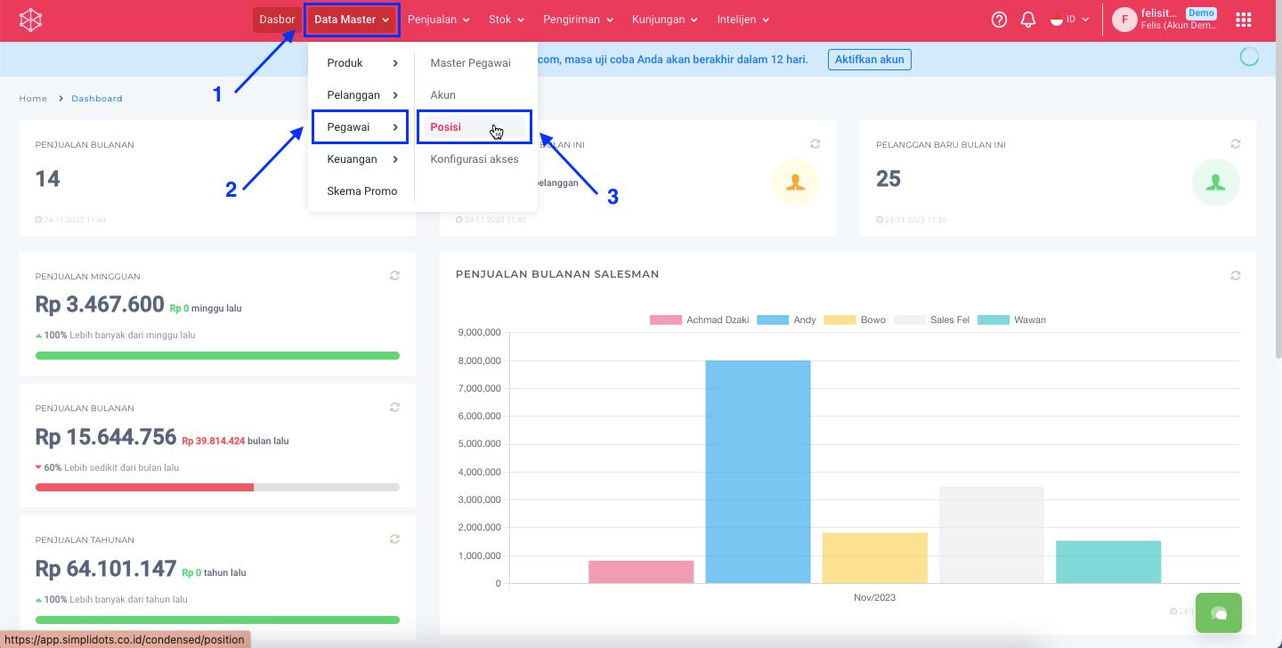 **Step 1:** Masuk ke menu **Data Master > Pegawai > Posisi.**