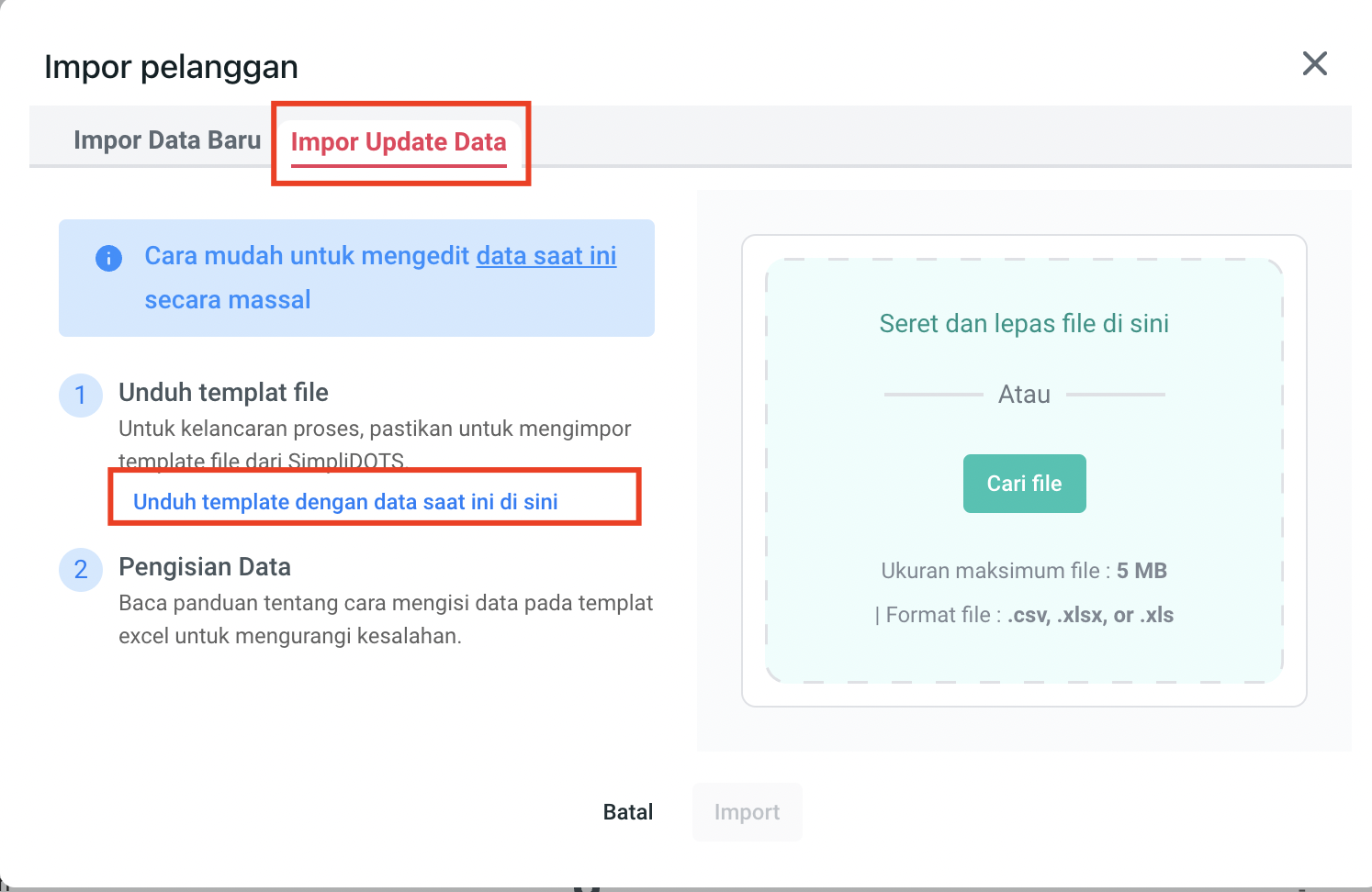 **Step 4.** Pilih **Impor Update Data** > **Unduh template dengan data saat ini di sini.**