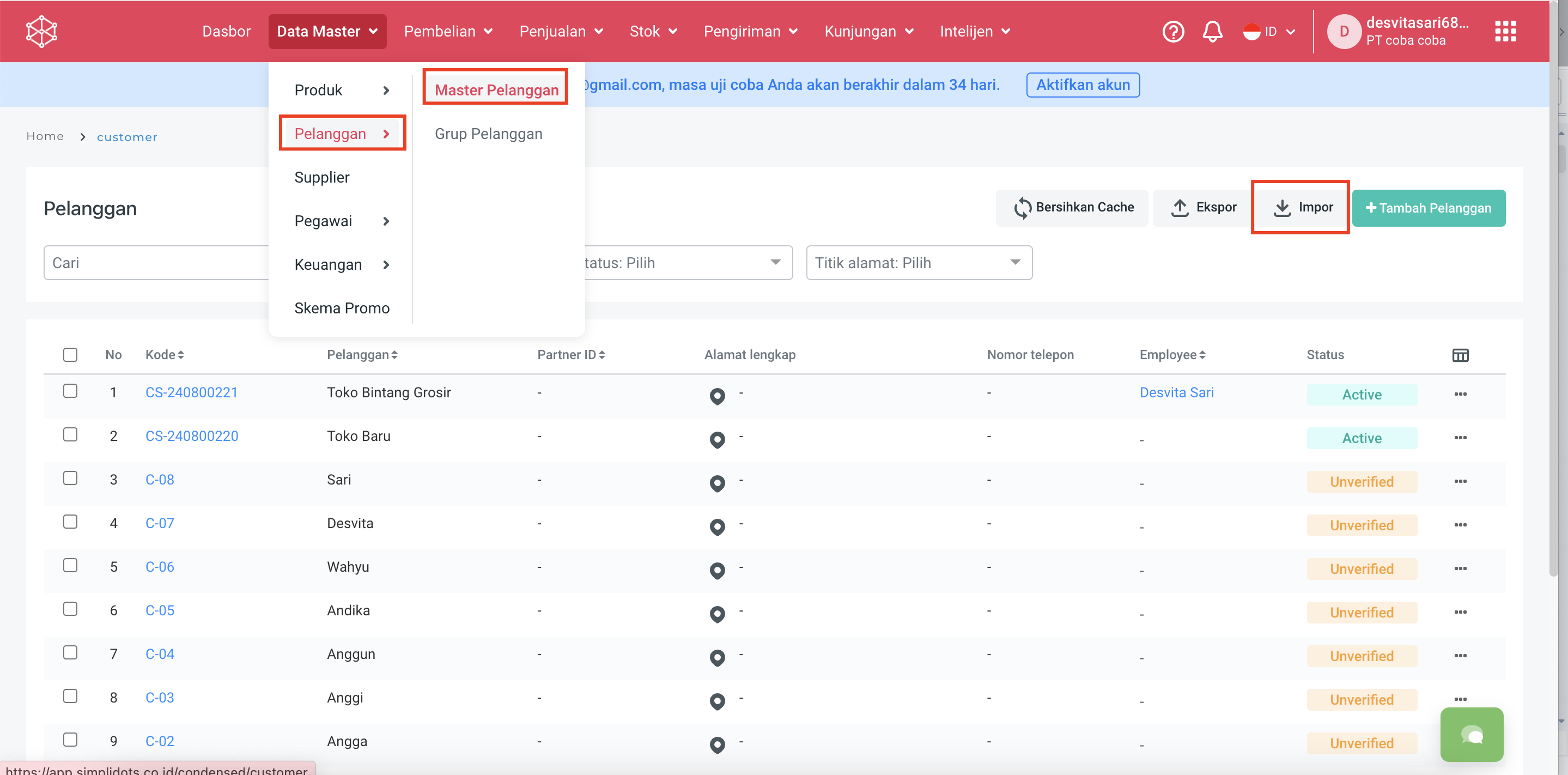 **Step 2.** Pilih **Pelanggan > Master Pelanggan.**