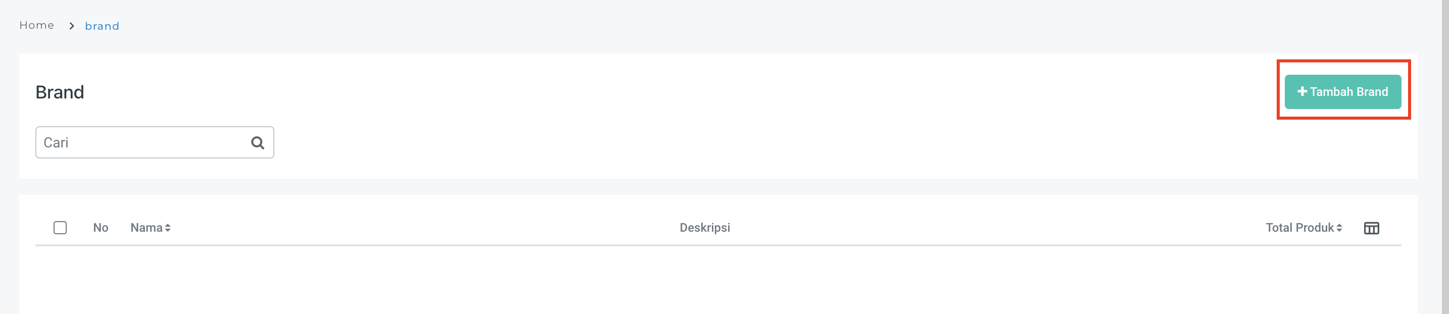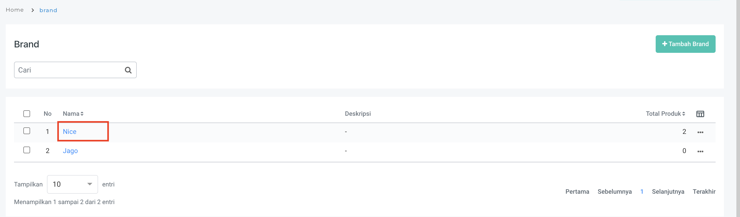 Brand telah tersimpan dan user akan diarahkan menu daftar Brand seperti berikut.