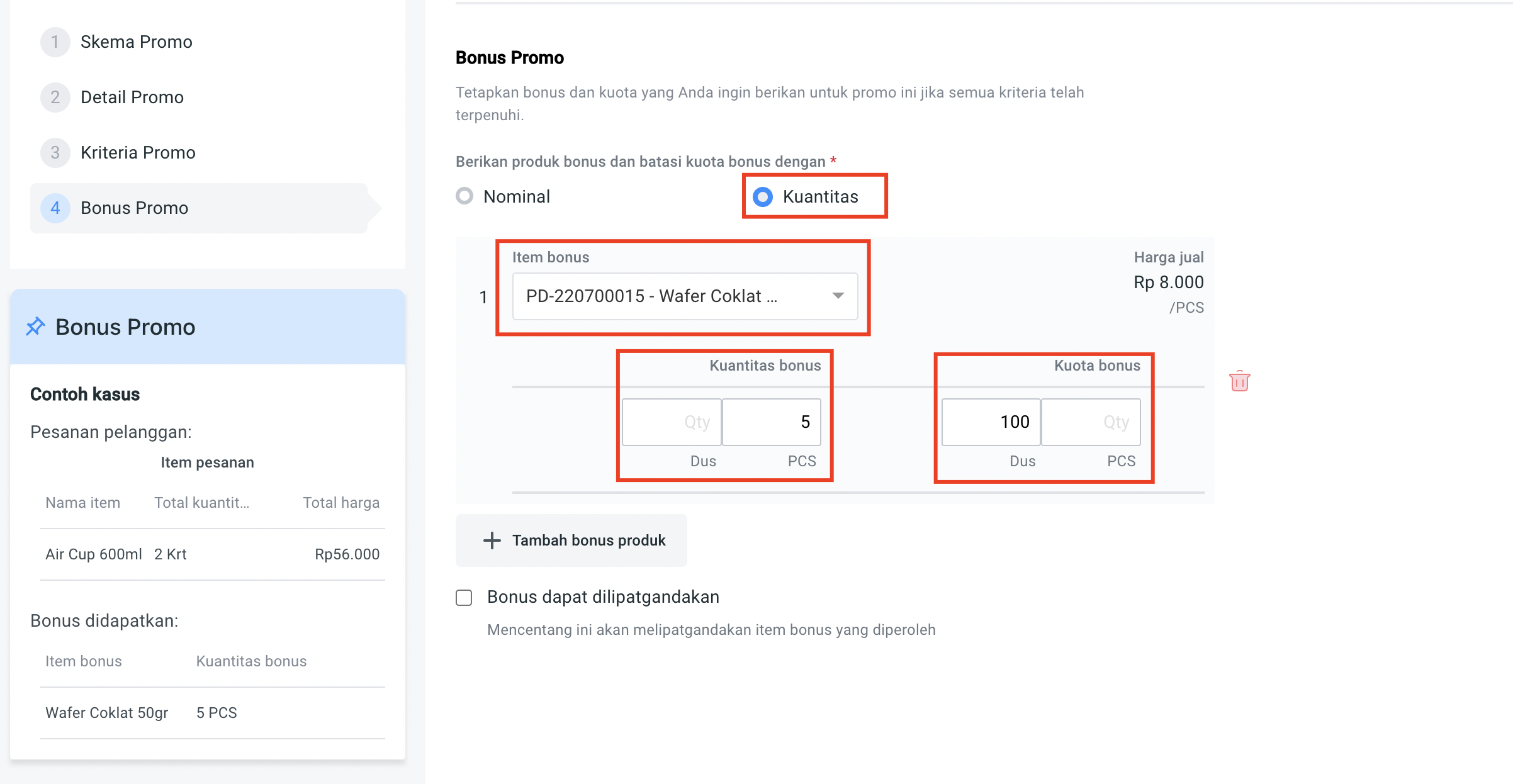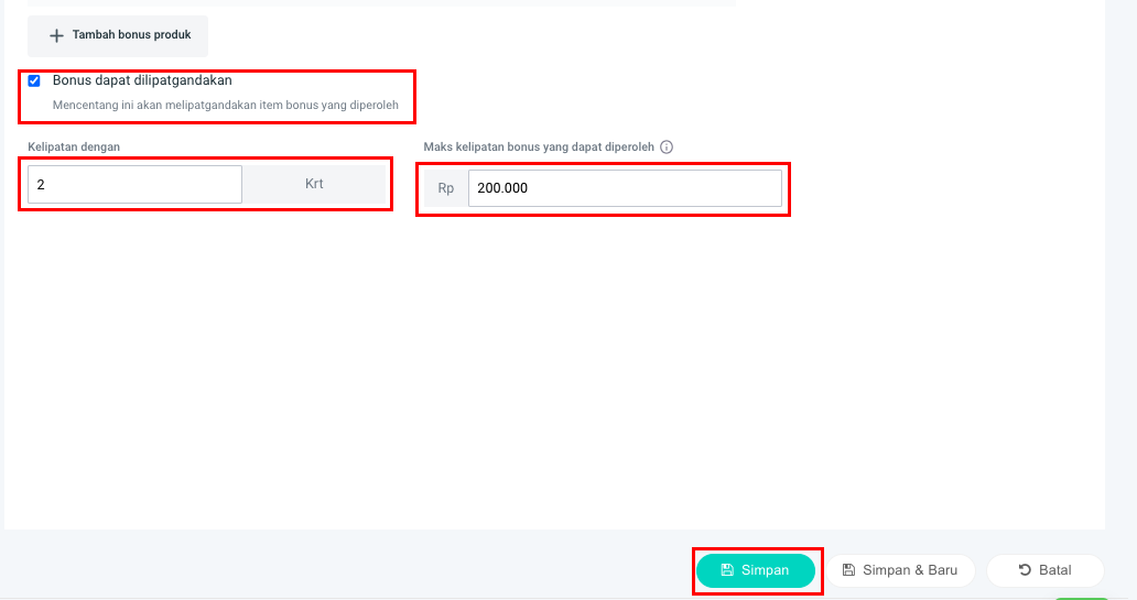 **Step 7:** Kamu dapat menambah pilihan bonus dapat dilipatgandakan dengan centang **Bonus dapat dilipatgandakan.**