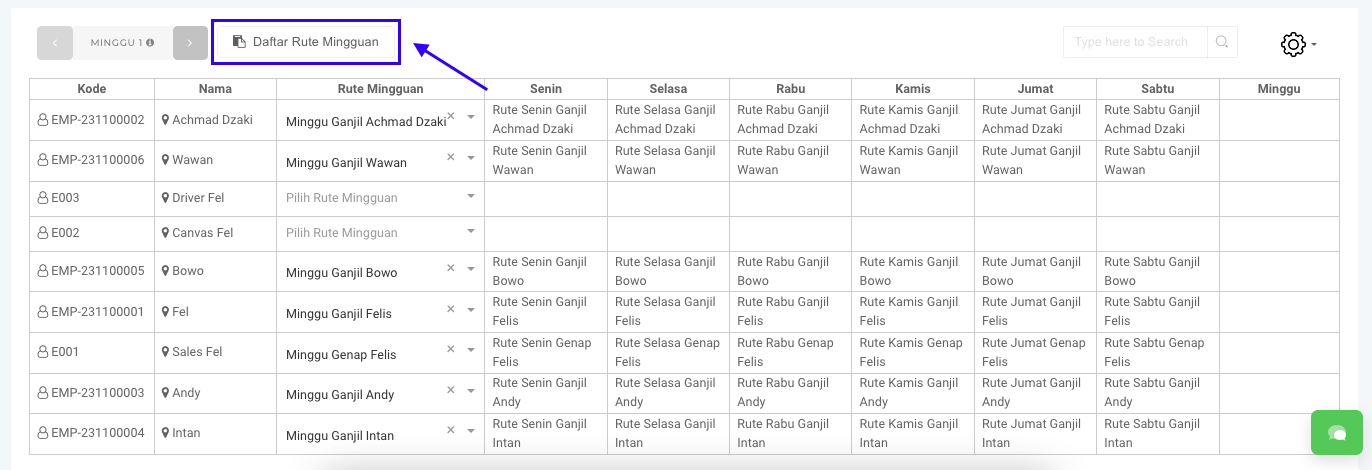 **Step 2:** Klik tombol **Daftar Rute Mingguan**.