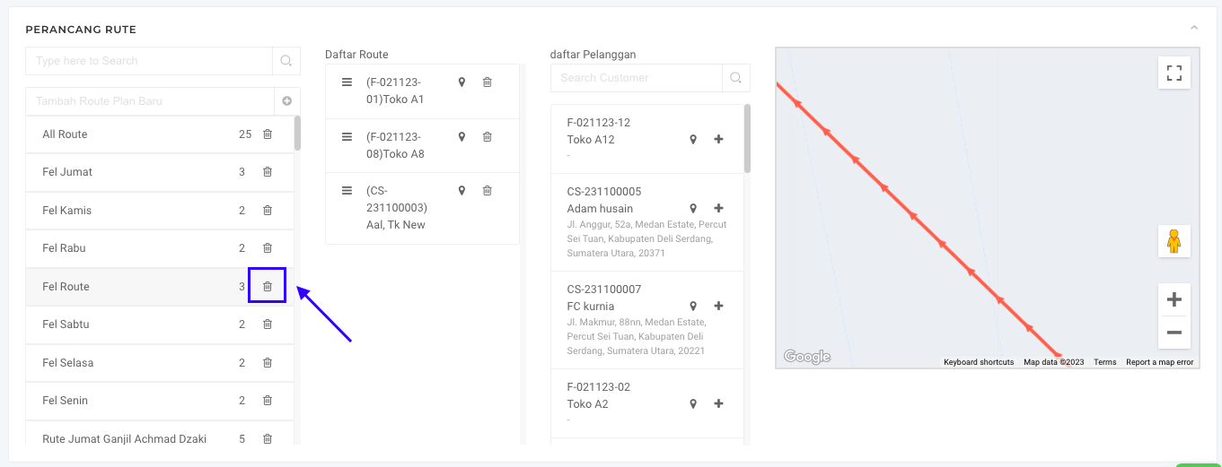 ### Cara Menghapus Perancangan Rute (Rute Harian)