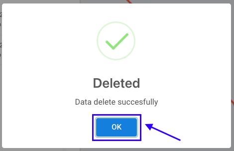 **Step 3:** Akan muncul pop up notifikasi **Deleted**. Kemudian klik tombol **OK**.