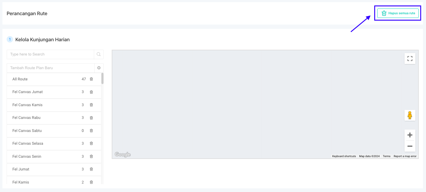 **Step 3:** Klik tombol **Hapus Semua Rute**.