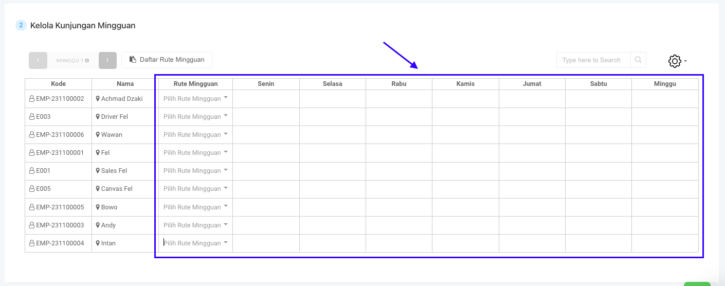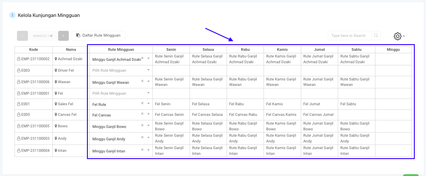 **Tampilan Rute Mingguan**