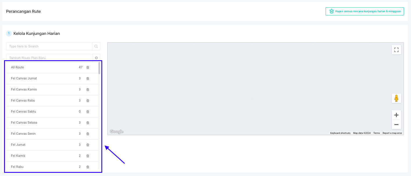 ### Cara Menghapus Semua Rute Harian dan Mingguan (Reset Rute)&#x20;