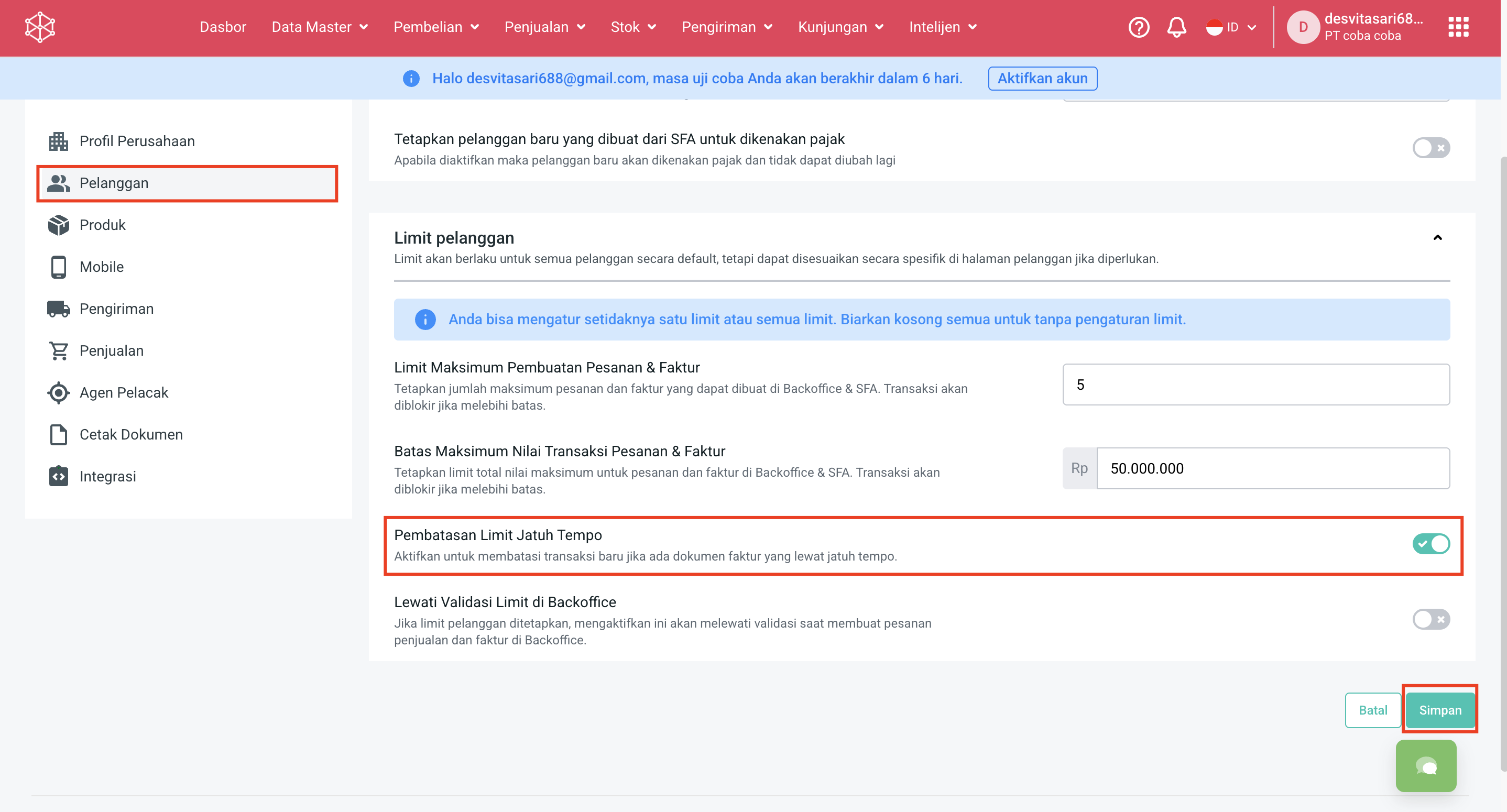 ### Aktifkan Pembatasan Limit Jatuh Tempo