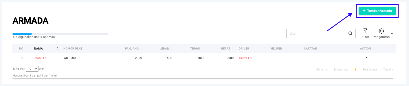 **Step 2:** Klik tombol **+ Tambah Armada**.