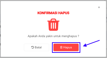 **Step 3:** Akan muncul pop up **Konfirmasi Hapus,** kemudian klik tombol **Hapus.**