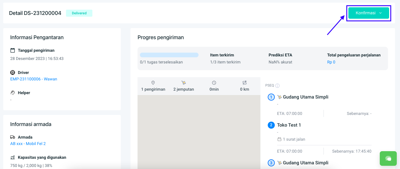 **Step 2.3:** Klik tombol **Konfirmasi Pengiriman**.