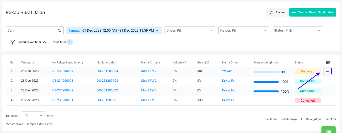 **Step 2:** Untuk melakukan Konfirmasi Pengiriman bisa dengan 2 cara, yaitu melalui **icon** <img src="https://3837174706-files.gitbook.io/~/files/v0/b/gitbook-x-prod.appspot.com/o/spaces%2F-ML6LhsHx5TJpV4GOuvJ%2Fuploads%2FyexNA2284H1mGWfRAmW4%2FScreenshot%202023-12-28%20at%2017.48.03.png?alt=media&#x26;token=f5ada7db-1434-44f8-a3f4-80ecddecbcd9" alt="" data-size="original"> pada kolom **Action** dan melalui **detail Rekap Surat Jalan**.