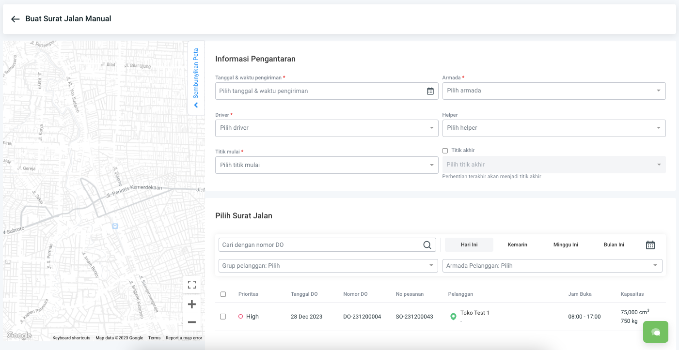 **Step 5:** Akan masuk pada halaman untuk **Buat Surat Jalan Manual**.
