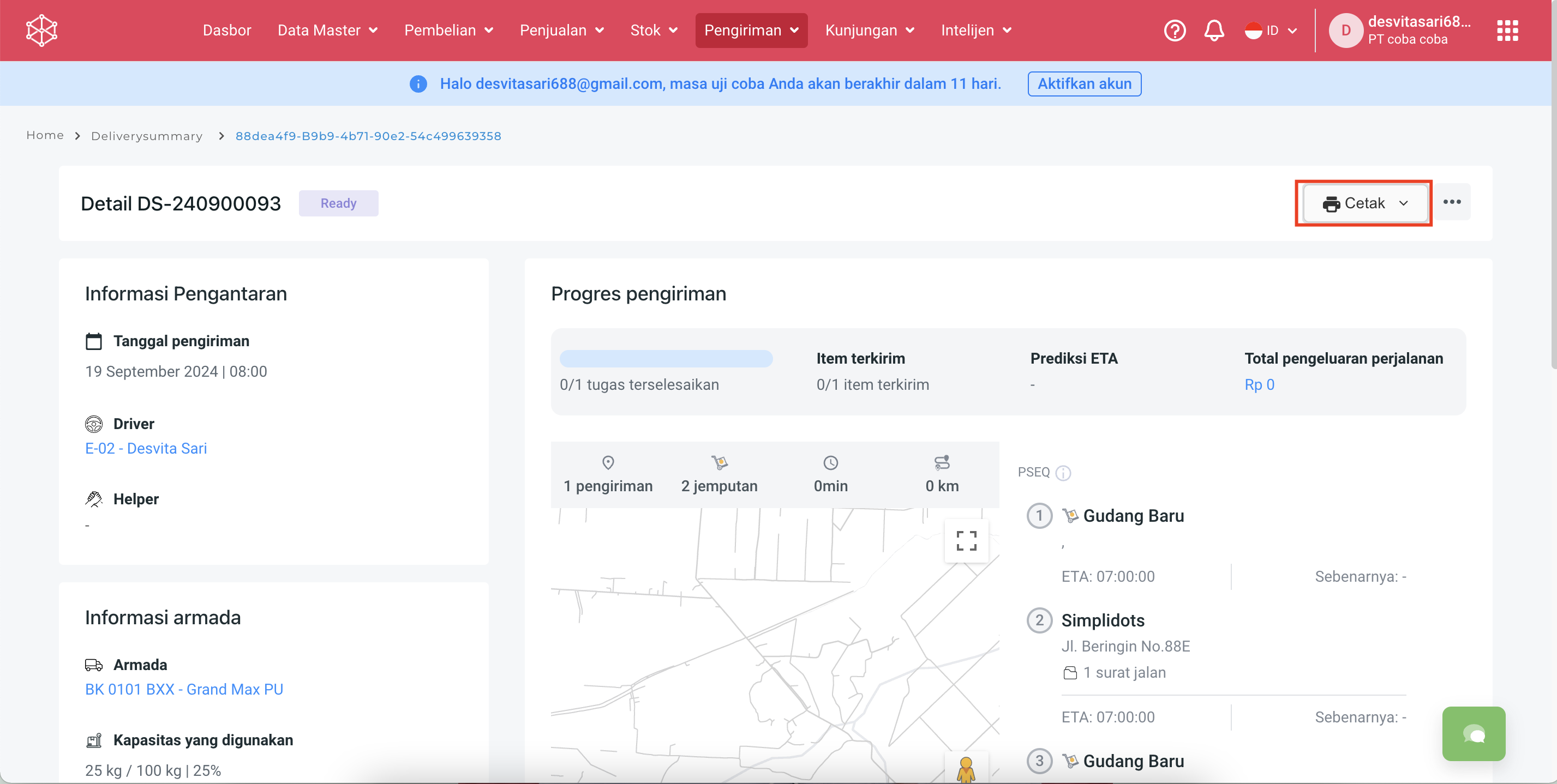 Pilih **nomor Rekap Surat Jalan** kemudian **Cetak.**