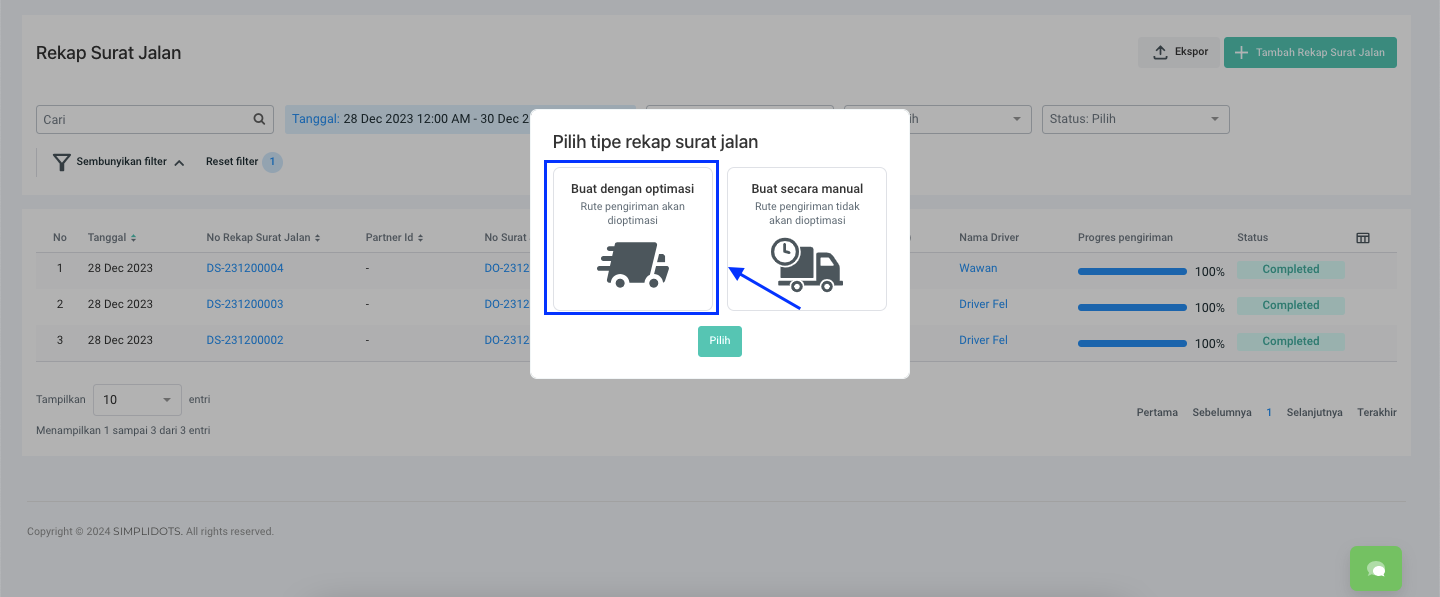 # Cara Tambah Rekap Surat Jalan (Rute Optimasi)