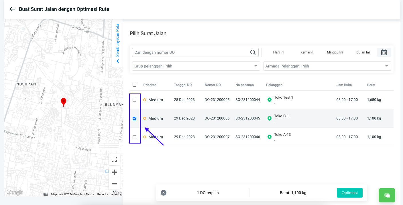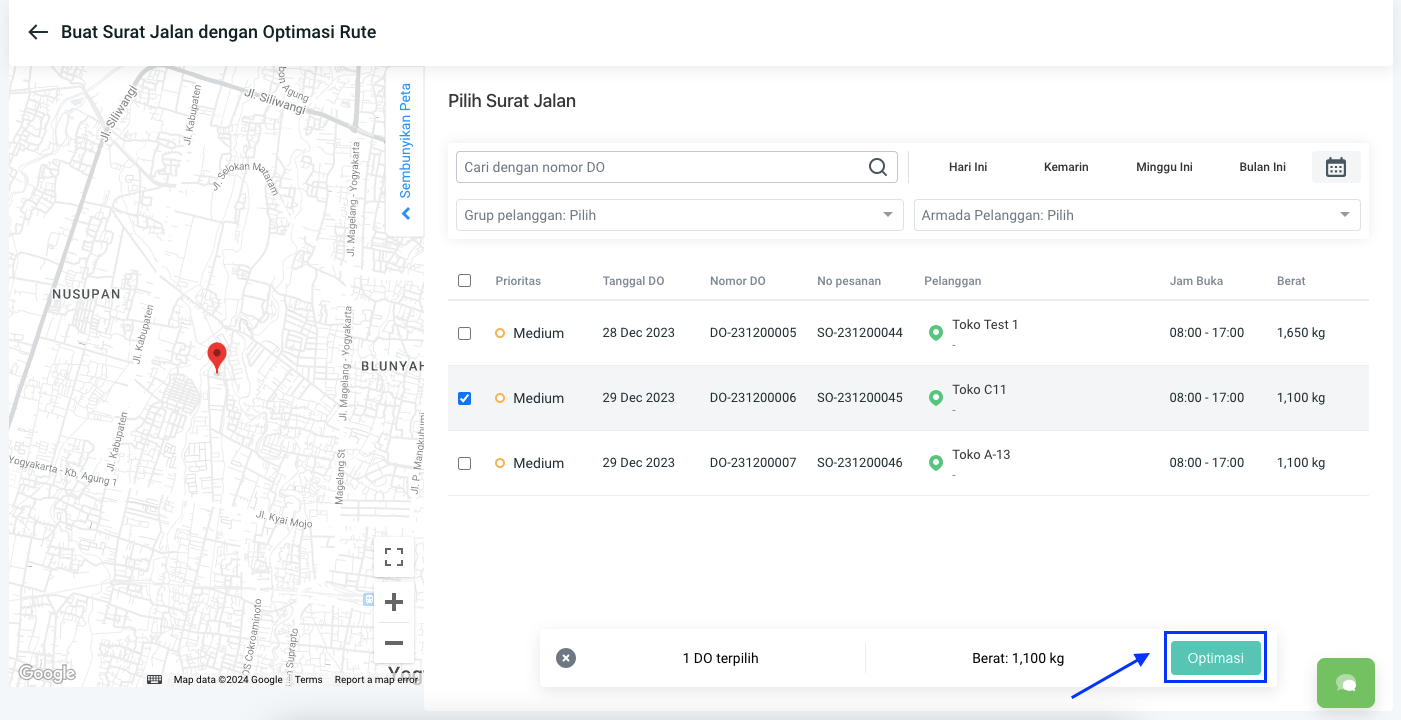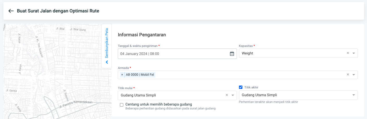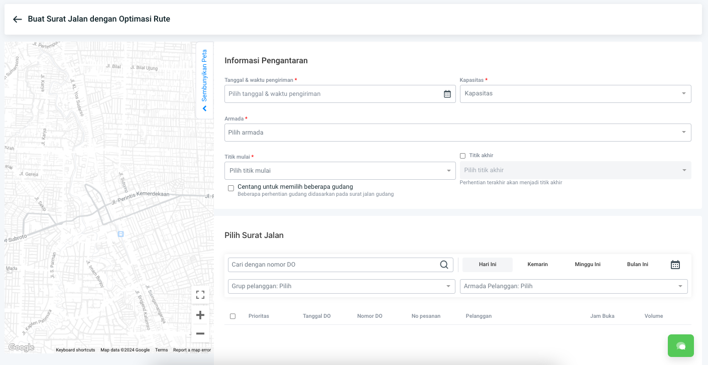 **Step 5:** Akan masuk pada halaman untuk **Buat Surat Jalan dengan Optimasi Rute**.
