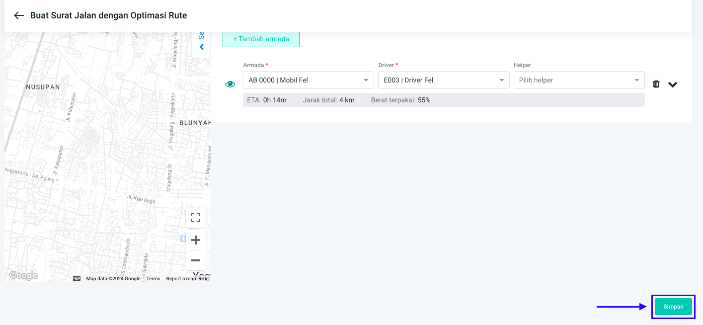 ### Cara Tambah Rekap Surat Jalan (Rute Optimasi)