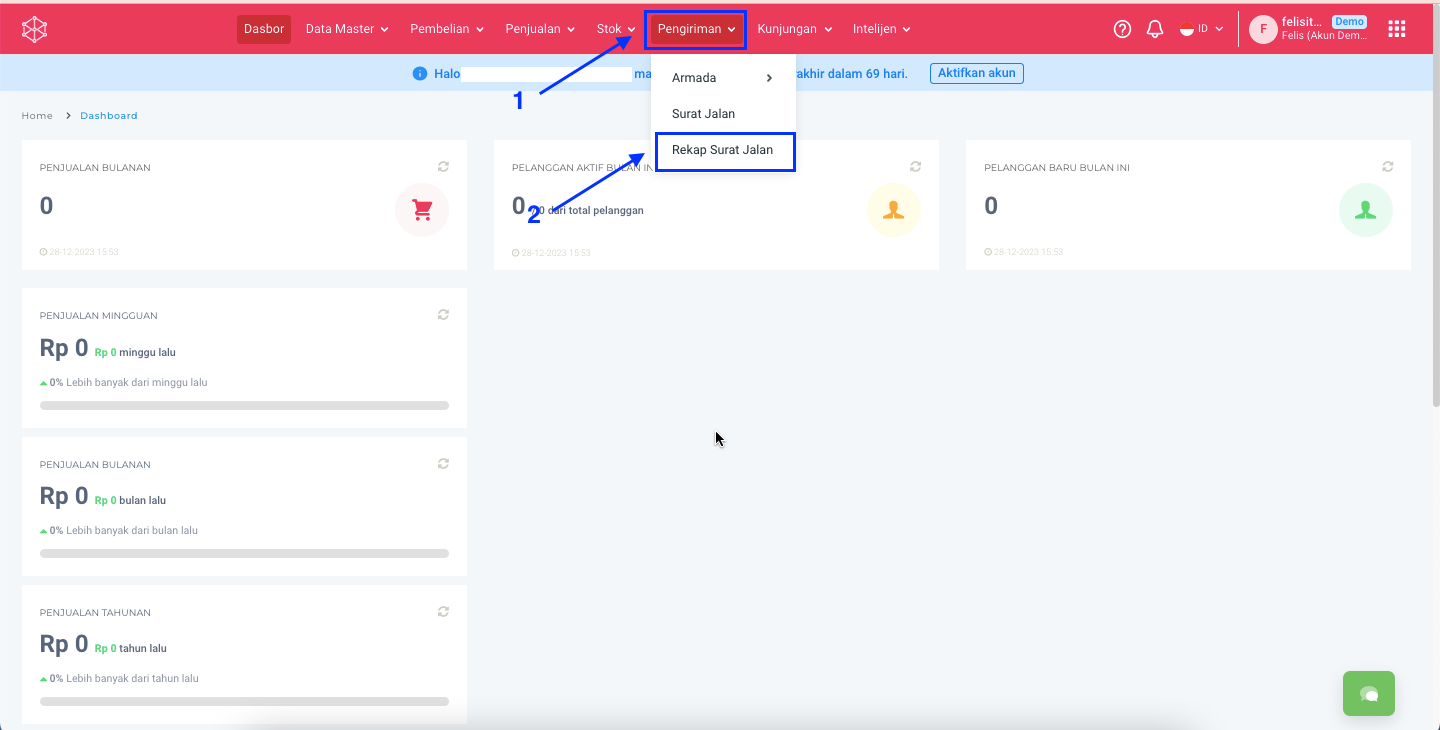 **Step 1:** Masuk ke menu **Pengiriman > Rekap Surat Jalan.**