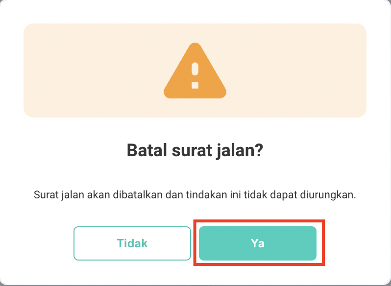 **Step 6.** Pilih **Ya** pada pesan konfirmasi "Batal surat jalan?".