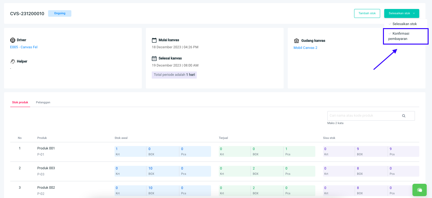 * **Ongoing:** Tambah stok, selesaikan stok, konfirmasi pembayaran, dan akhiri canvas.
