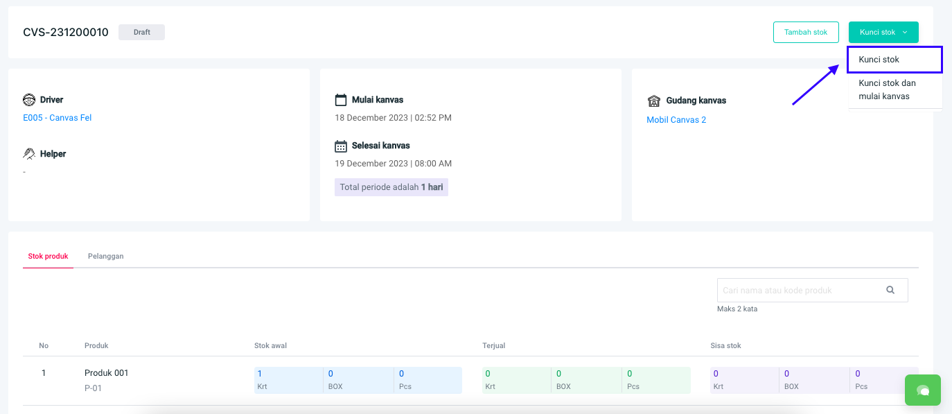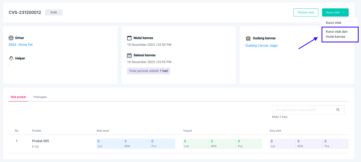 * **Draft:** Tambah stok, kunci stok, kunci stok dan canvas, ubah, dan batal.