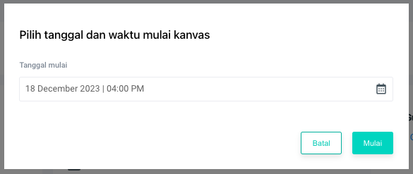 **Step 4.2:** Akan muncul pop up **pilih tanggal dan waktu mulai kanvas.**&#x20;
