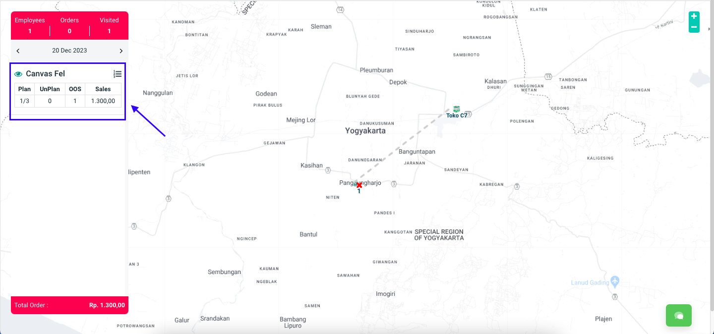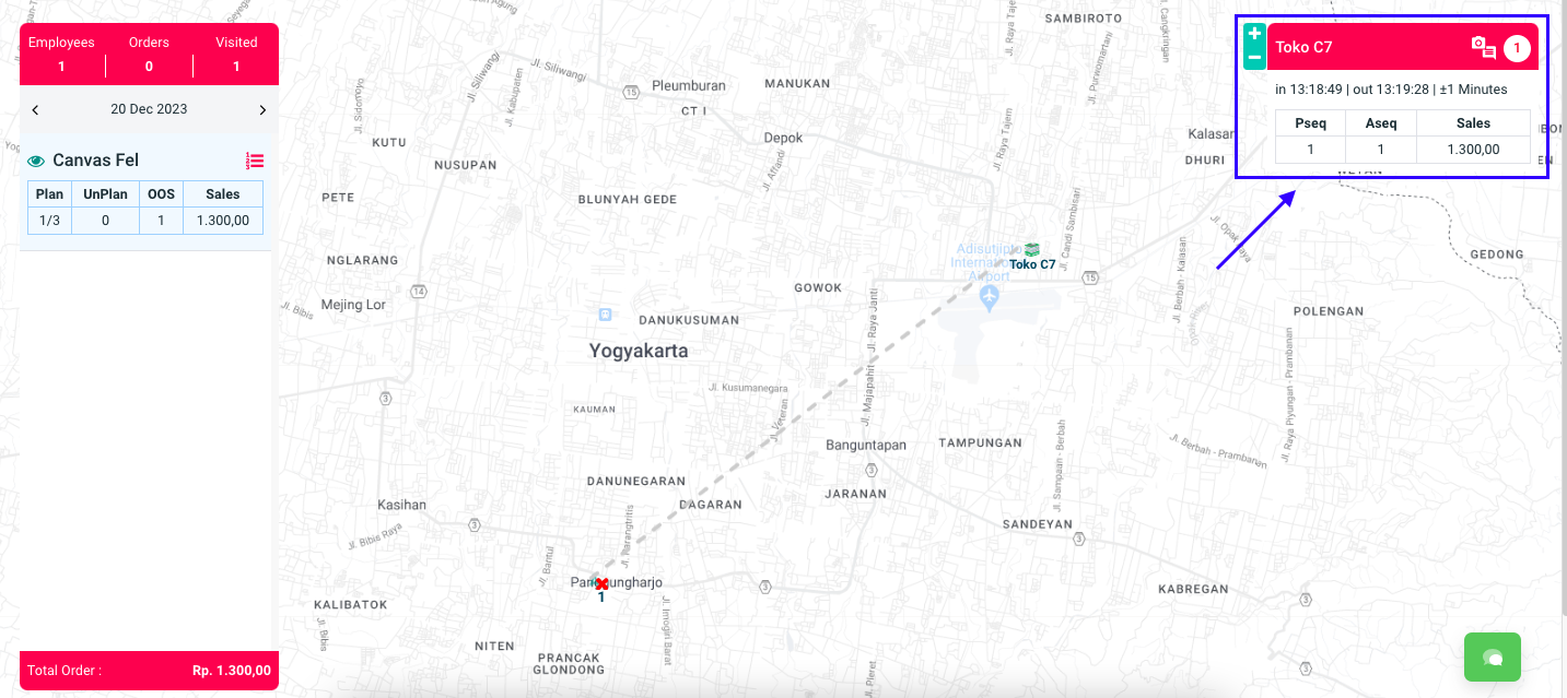 **Step 3:** Akan muncul nama customer yang telah dikunjungi.
