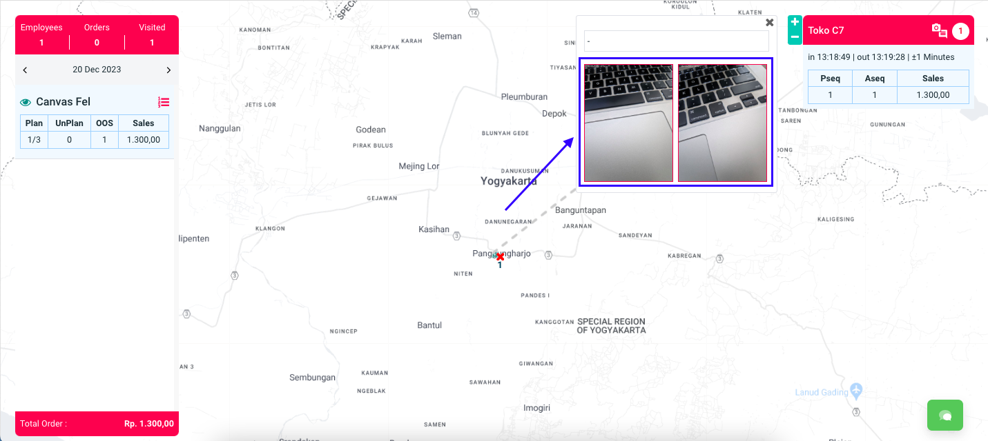 **Step 2:** Pilih nama salesman yang ingin dilihat hasil kunjungannya.