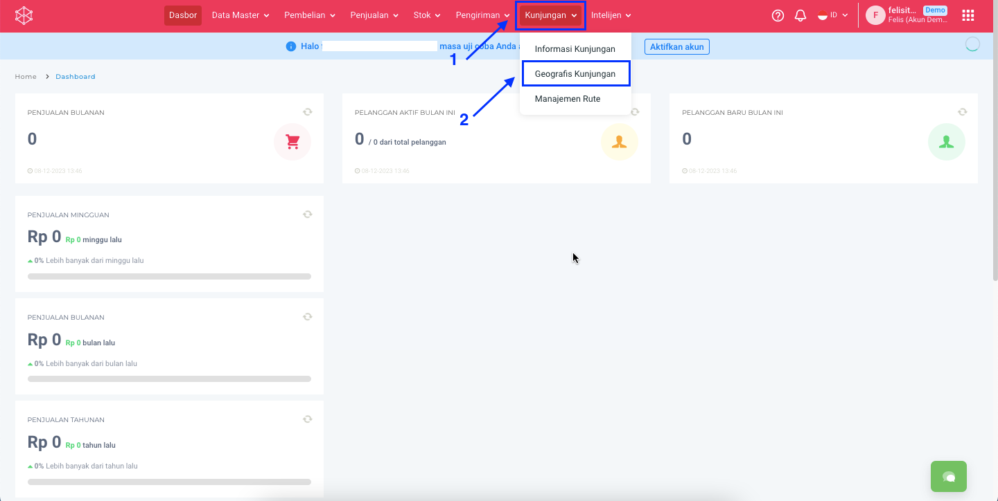 **Step 1:** Masuk ke menu **Kunjungan** > **Geografis Kunjungan.**