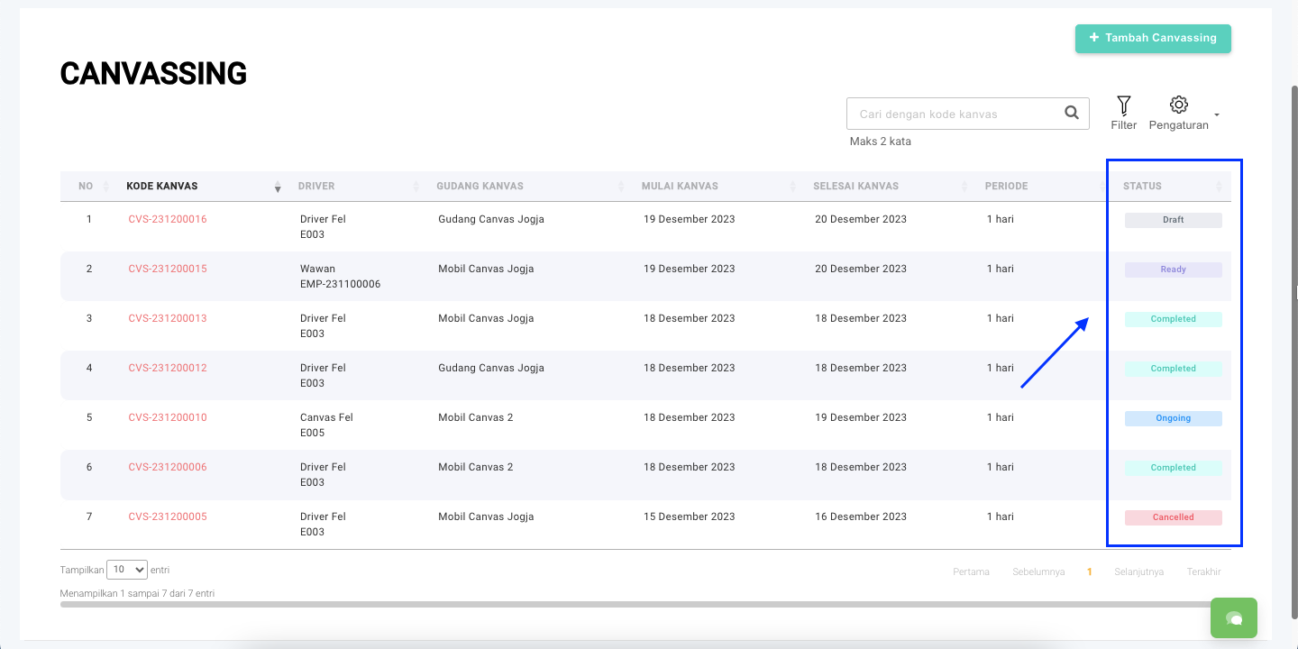 * **Status:** Filter berdasarkan riwayat status canvassing.
