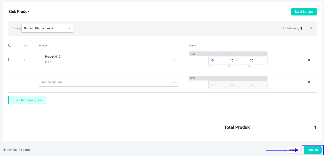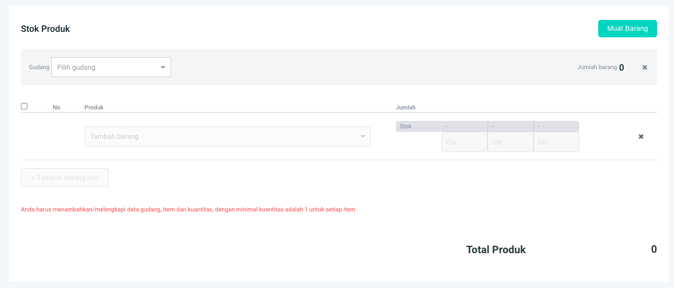 * **Muat Barang:** Pilih jika ingin menambah stok produk dari gudang yang berbeda.&#x20;