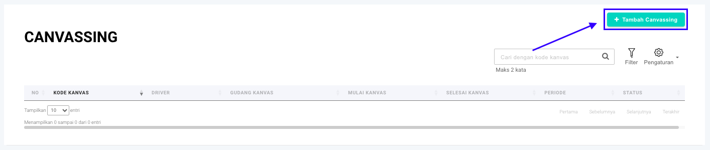 **Step 2:** Klik tombol **+ Tambah Canvassing**.