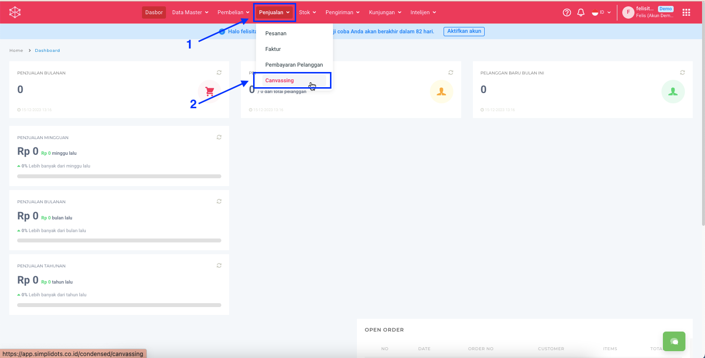**Step 1:** Buka menu **Penjualan > Canvassing.**