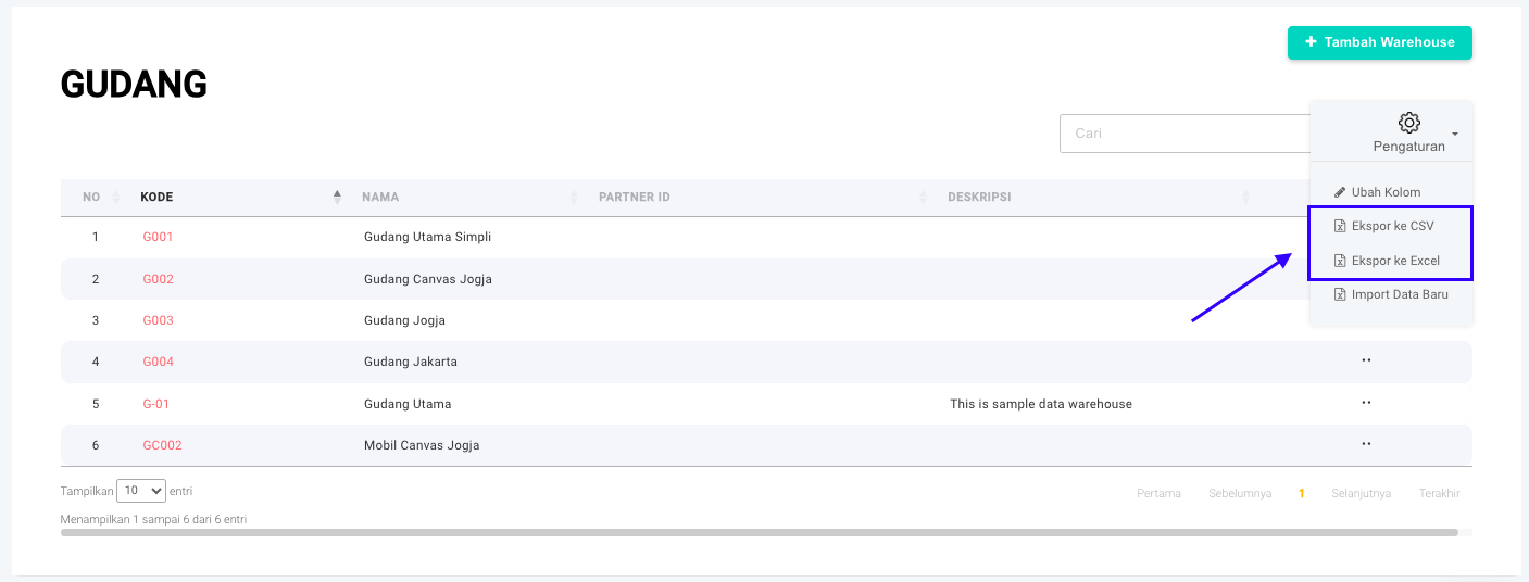 ### Cara Ekspor Gudang